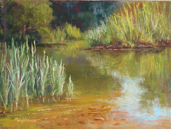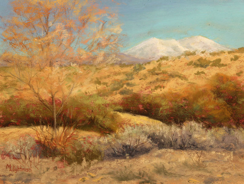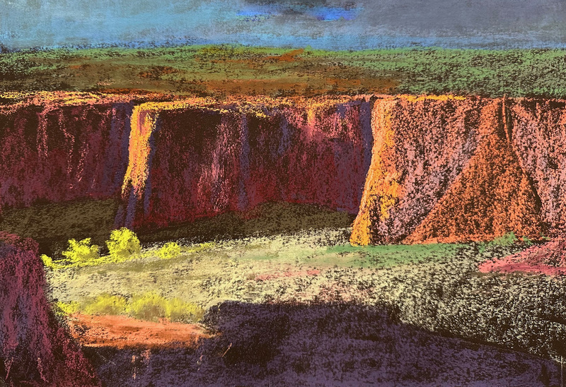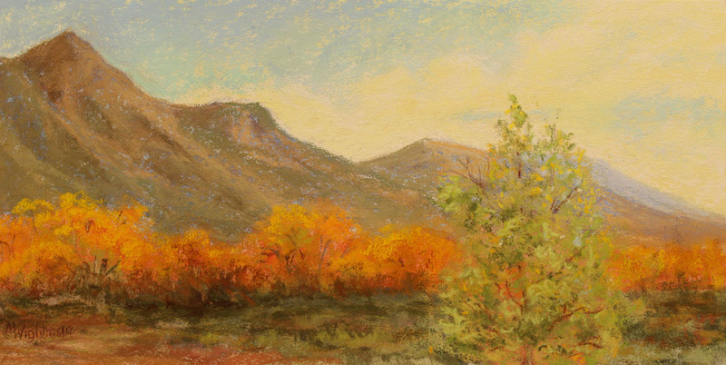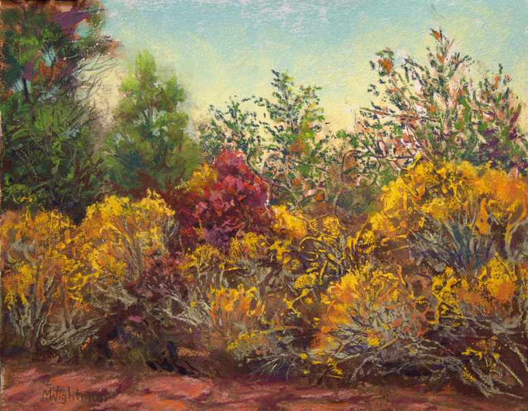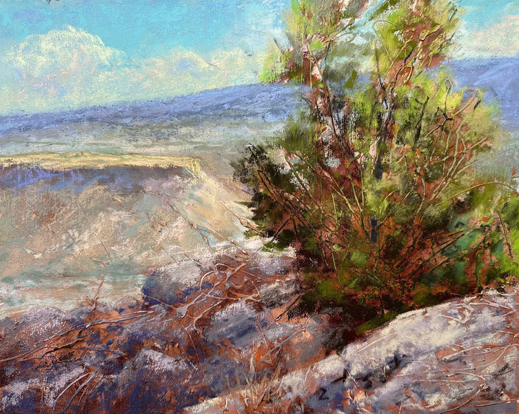 Pastels offer the benefits of combining colors for infinite variety without the odor or need for water. One can never have too many pastel colors though and it is always a treat to get a new box of yummy colors. I never had an interest in landscape until I moved out to the beautiful landscape of New Mexico. Now I join the many other artists in this area who try to catch the beauty of the brilliant light.